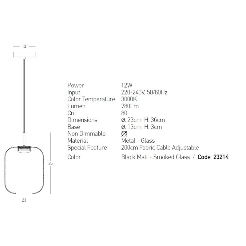 | Dimensiuni | diametru:23cm; inaltime corp:36cm; inaltime suspensie:max.200cm |