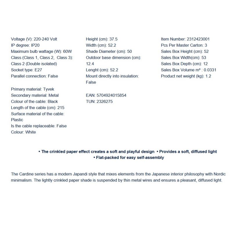 Dimensiuni | diametru:52,2cm; inaltime corp:37,5cm; cablu 200cm |