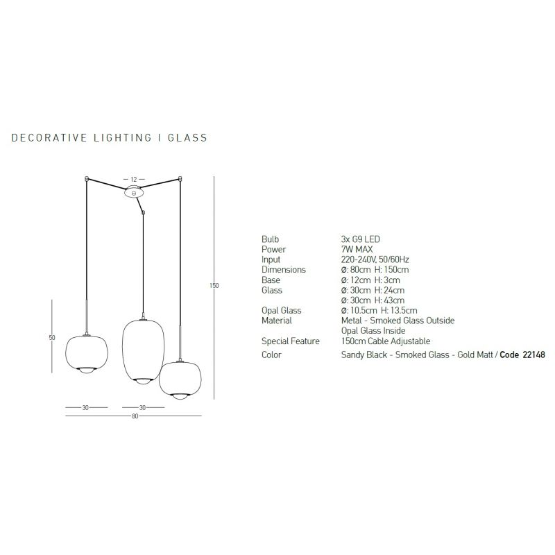| Materiale | metal negru, metal auriu mat, sticla negru-fumuriu exterior si opaca interior |