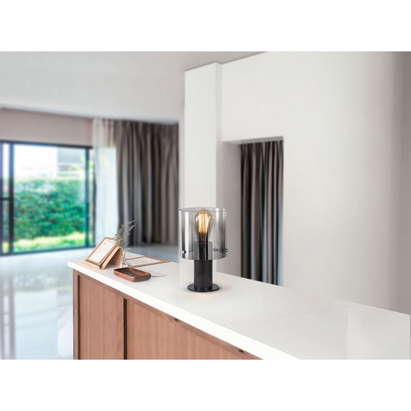 | Materiale | metal finisat negru satinat, abajur sticlă fumurie, |