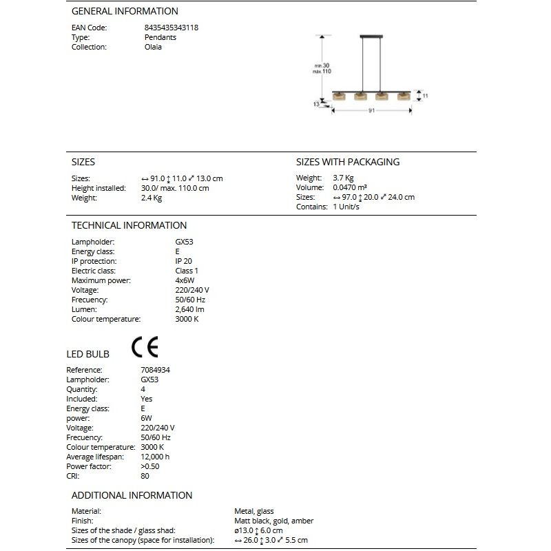 | Materiale | metal finisat negru mat si auriu, abajur sticlă chihlimbar |