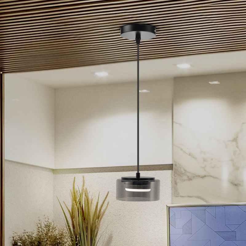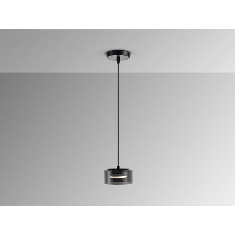| Materiale | metal finisat negru mat, abajur sticlă fumurie |