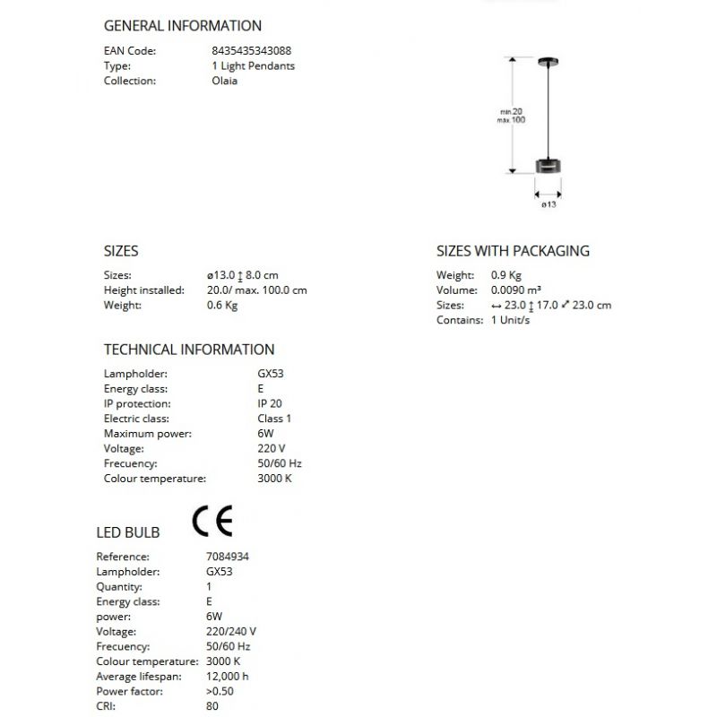 | Dimensiuni | diametru:13cm; inaltime corp:8cm; inaltime suspensie:min.20cm-max.100cm |