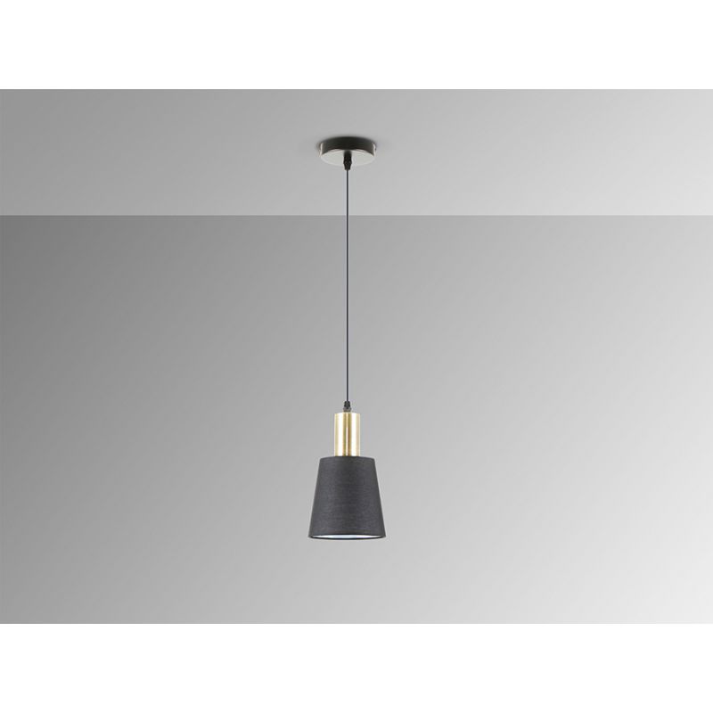 | Materiale | metal negru mat cu detalii din alama satinata, abajur textil nuanta neagra |