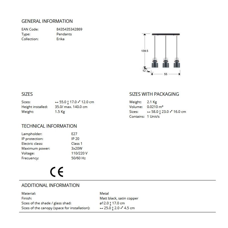 | Materiale | metal finisaj negru mat cu detalii din cupru satinat, abajur cu înclinare reglabilă |