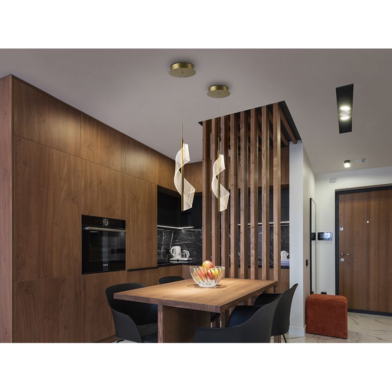 | Materiale | metal si aluminiu, finisaj auriu mat, difuzor curbat din metacrilat microimprimat |