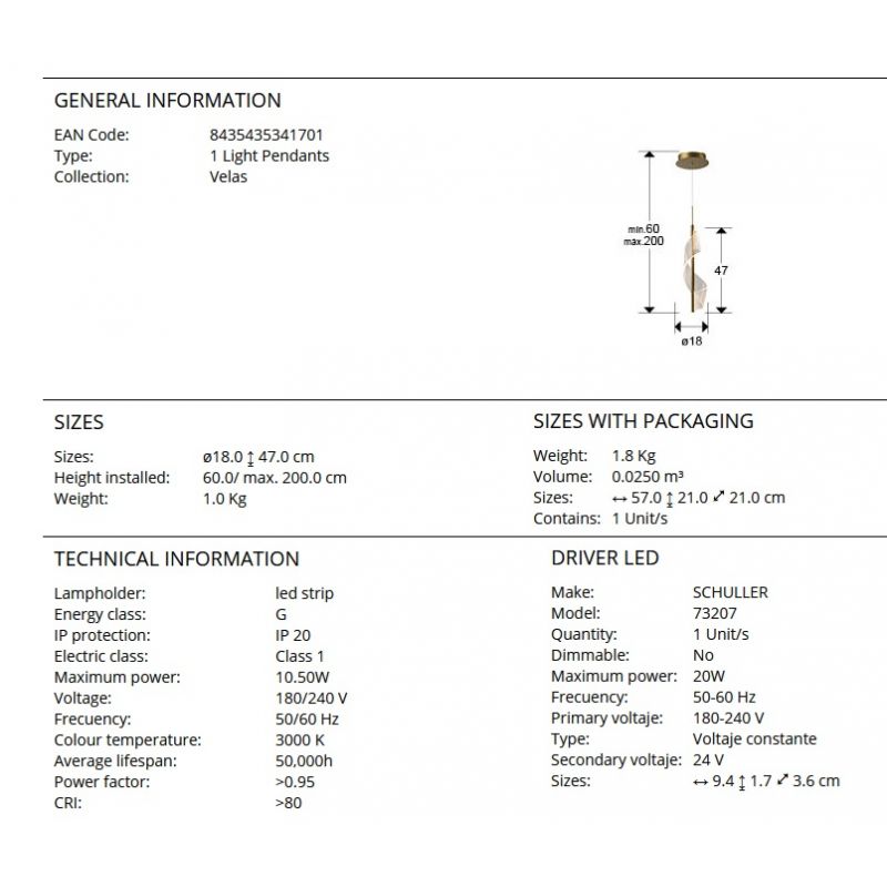 | Dimensiuni | diametru:18cm; inaltime corp:47cm; inaltime suspensie:max.200cm |
