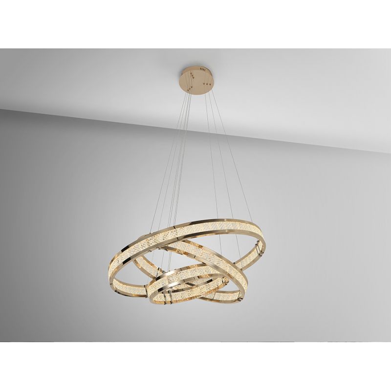 | Materiale | inele din otel si aluminiu, finisaj auriu lucios, difuzor realizat din piese de sticla texturata |