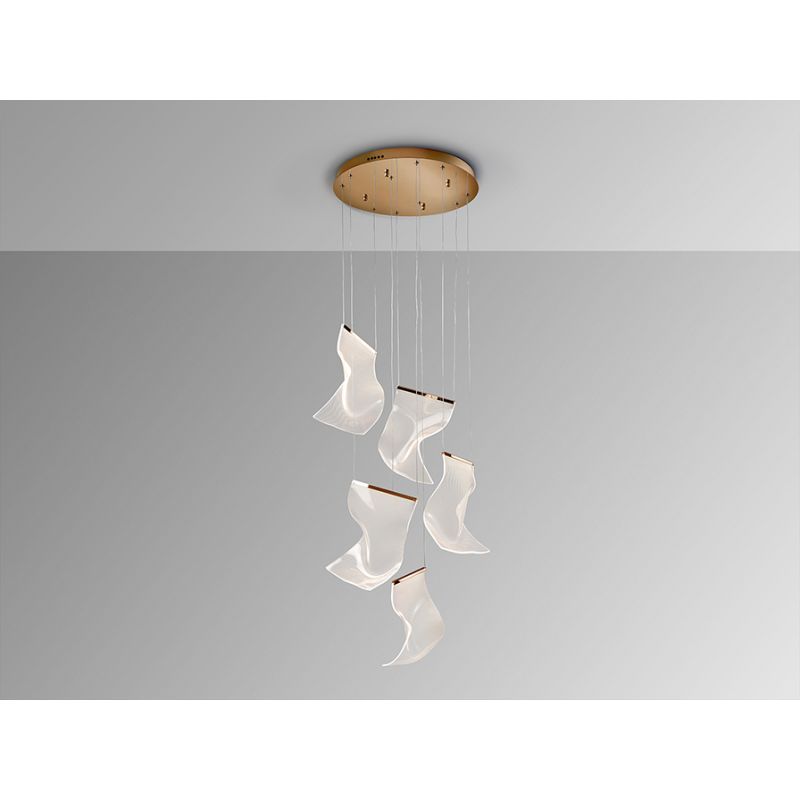 | Descriere | metal, finisaj auriu roz si abajururi din metacrilat micro-imprimat turnat |