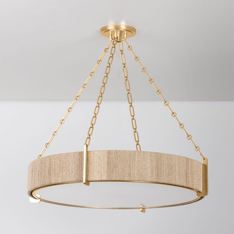 | Materiale | metal finisaj foita aurie, franghia Abaca albita, difuzor sticla opaca |