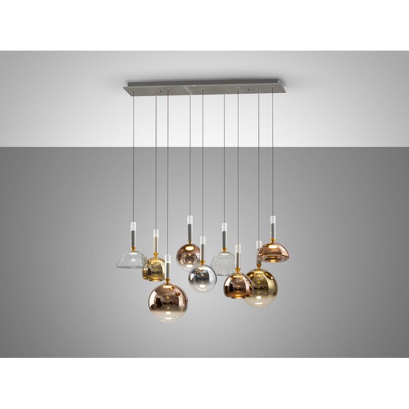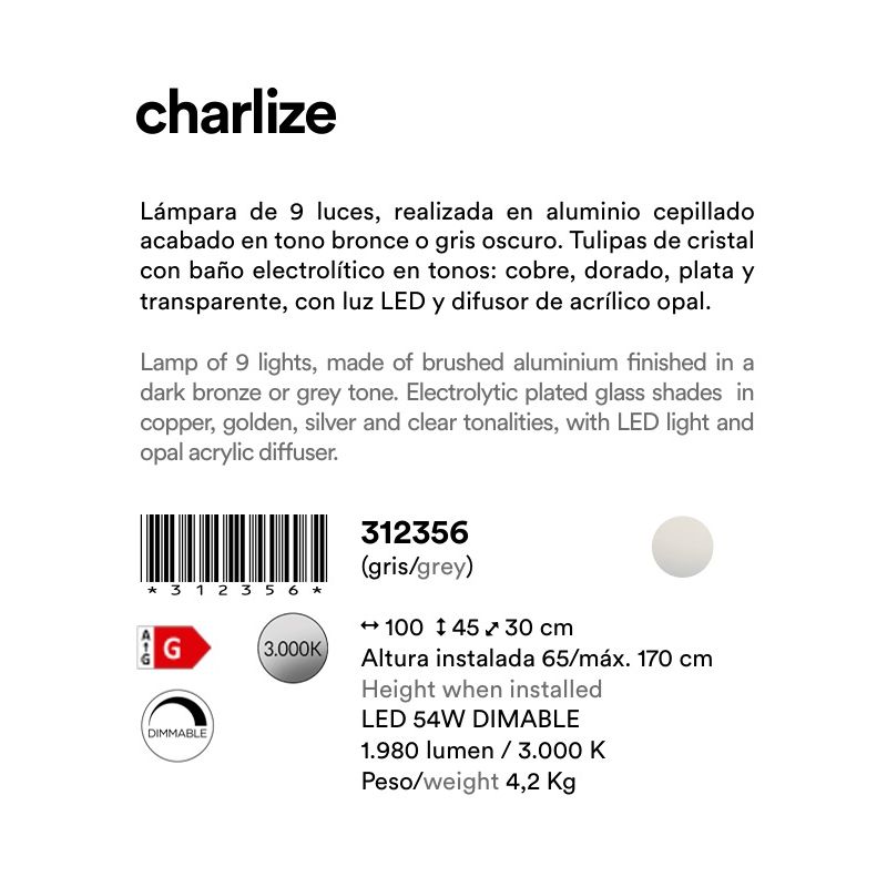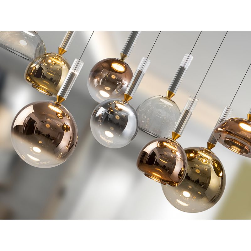 | Materiale | aluminiu finisaj gri inchis, sticla placata electrolitic in nuante de cupru, auriu, argintiu si clar |