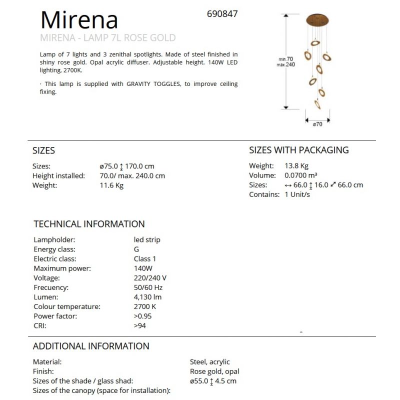 | Putere | 140Watt LED, 4130Lm, 2700K + 3 spoturi in baza |