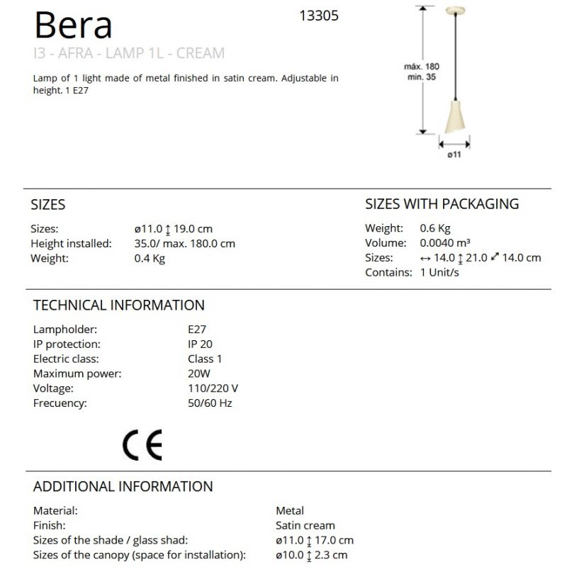| Putere | 1x 20 Watt E27, bec exclus din pret |
