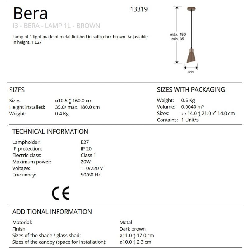 | Putere | 1x 20 Watt E27, bec exclus din pret |