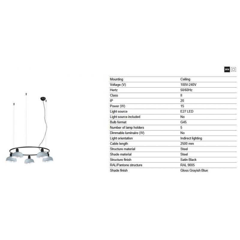 | Materiale | structura otel negru satin, abajur otel albastru Grayish Blue lucios |