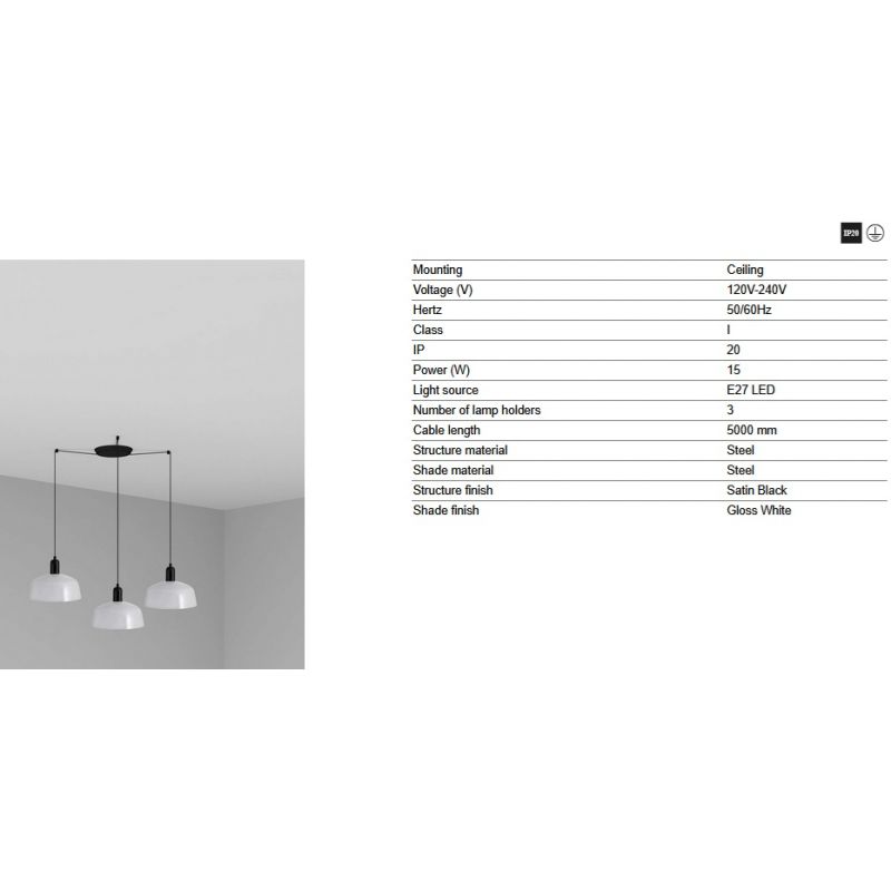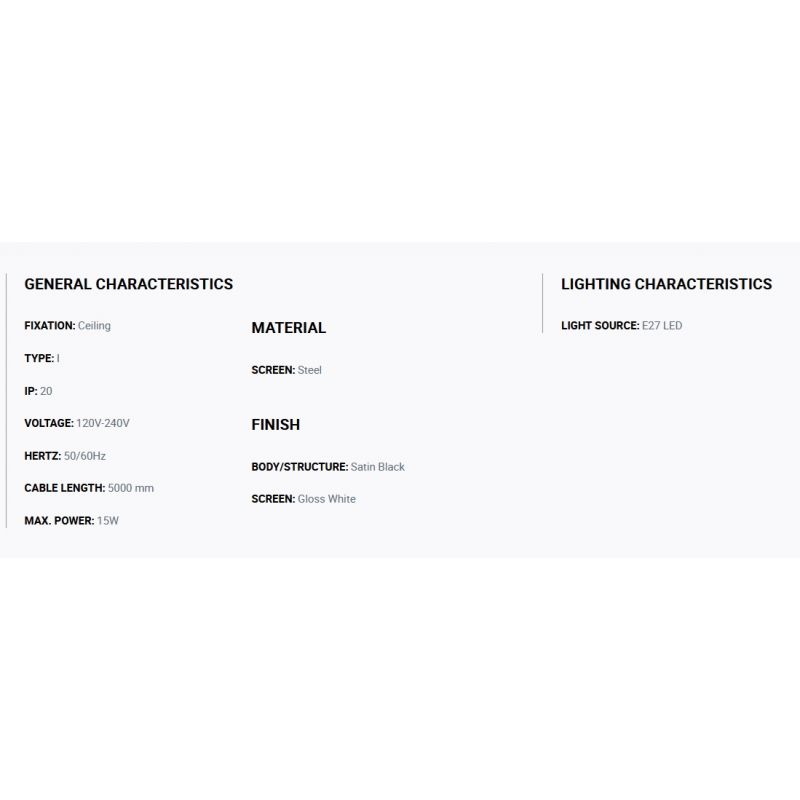 | Materiale | structura otel negru satin, abajur otel alb lucios |