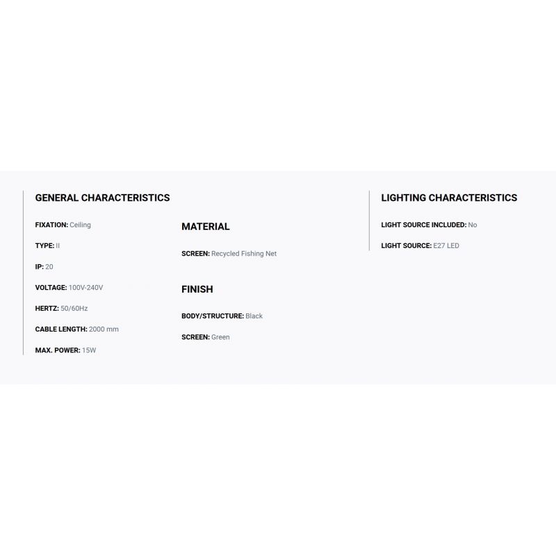 | Materiale | otel, abajur material reciclabil (Recycled Fishing Net) |