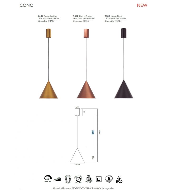 | Putere | LED integrat 10W, 3000K, 940lm, dimmable TRIAC |