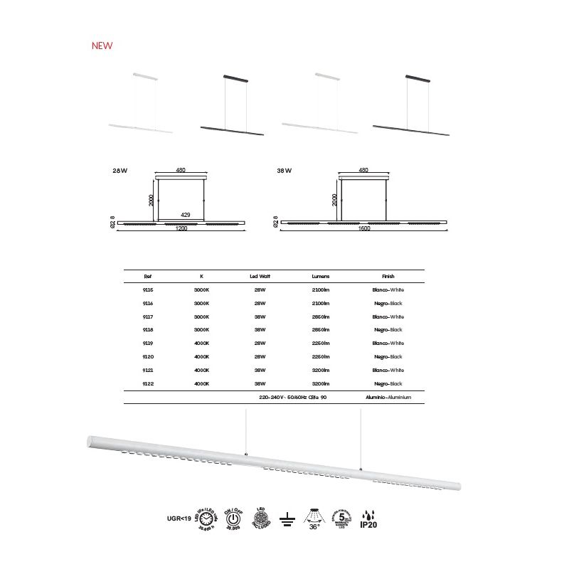Lustra LED suspendata liniara MECA 28W alb 3000K
