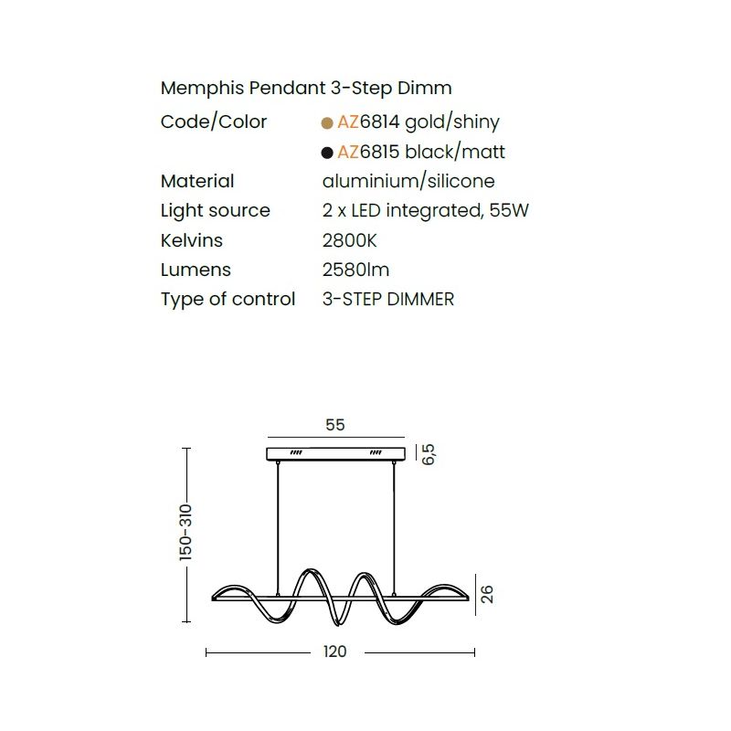 | Dimensiuni | lungime:120cm; inaltime corp:26cm; inaltime cu suspensie:150-310cm |