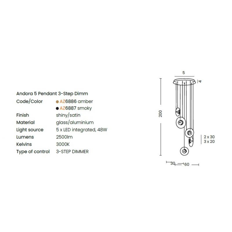 | Putere | 5x LED integrated, 48W, 2500Lm, 3000K, 3-STEP DIMMER |