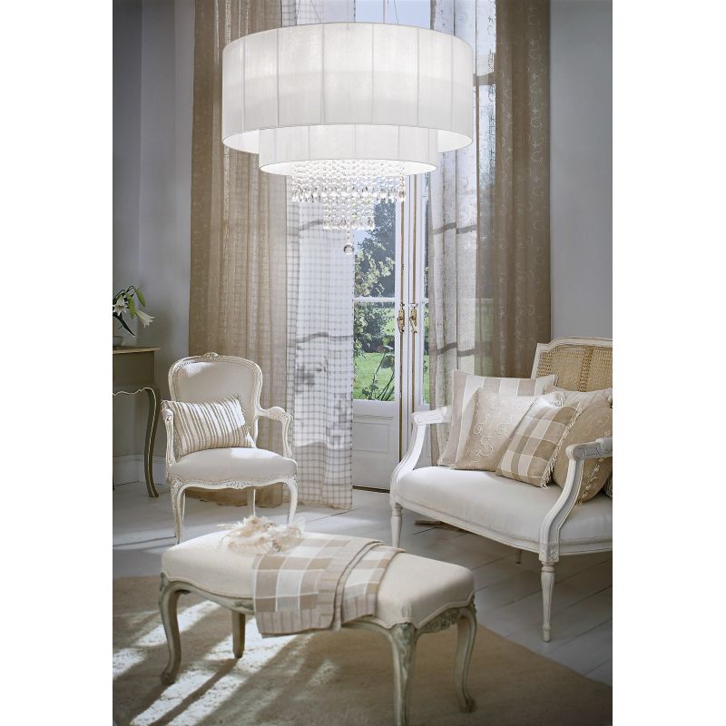 | Materiale | metal cromat, folie PVC cu reflexii metalice acoperita cu tesatura, decoratiuni din cristal |