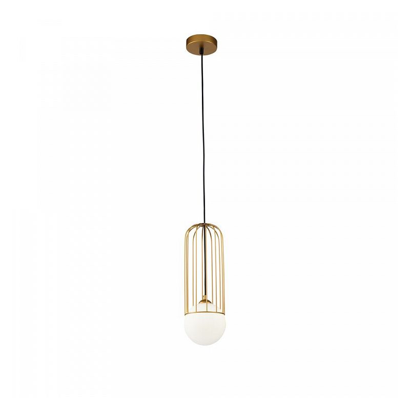 | Descriere | metal finisaj auriu, abajur sticla alba mat |