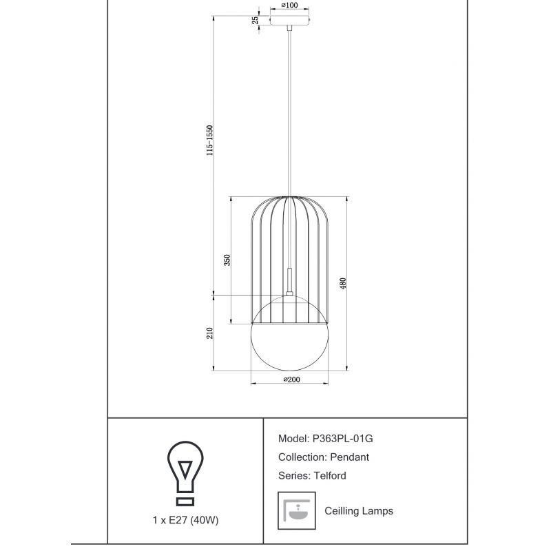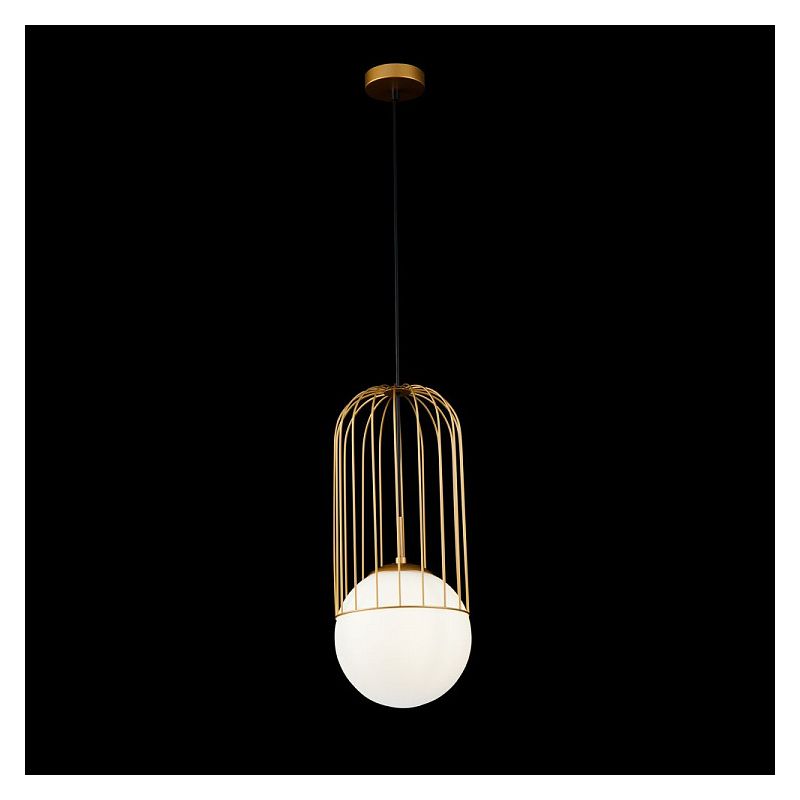 | Descriere | metal finisaj auriu, abajur sticla alba mat |