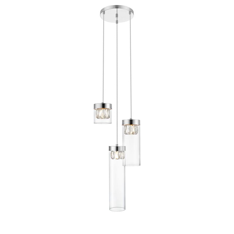 Lustra suspendata design modern, cadru de metal cu abajur din elemente de cristal si sticla transparenta, corp de iluminat pentru interior asigura lumina de accent, fiind o solutie optima pentru iluminatul interior decorativ.