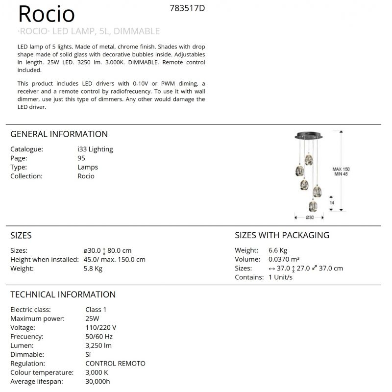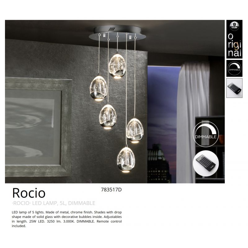Corpurile de iluminat cu LED din colectia ROCIO sunt elemente pentru iluminat care leaga mobilierul si decoratiunile interioare impreuna si confera caracter incaperii in care aceastea sunt montate. Confectionate dinmetal finisaj cromat sau auriu, sticla solida in forma de picatura cu bule decorative in interior, aceste corpuri de iluminat asigura lumina de accent, fiind o solutie optima pentru iluminatul interior decorativ.