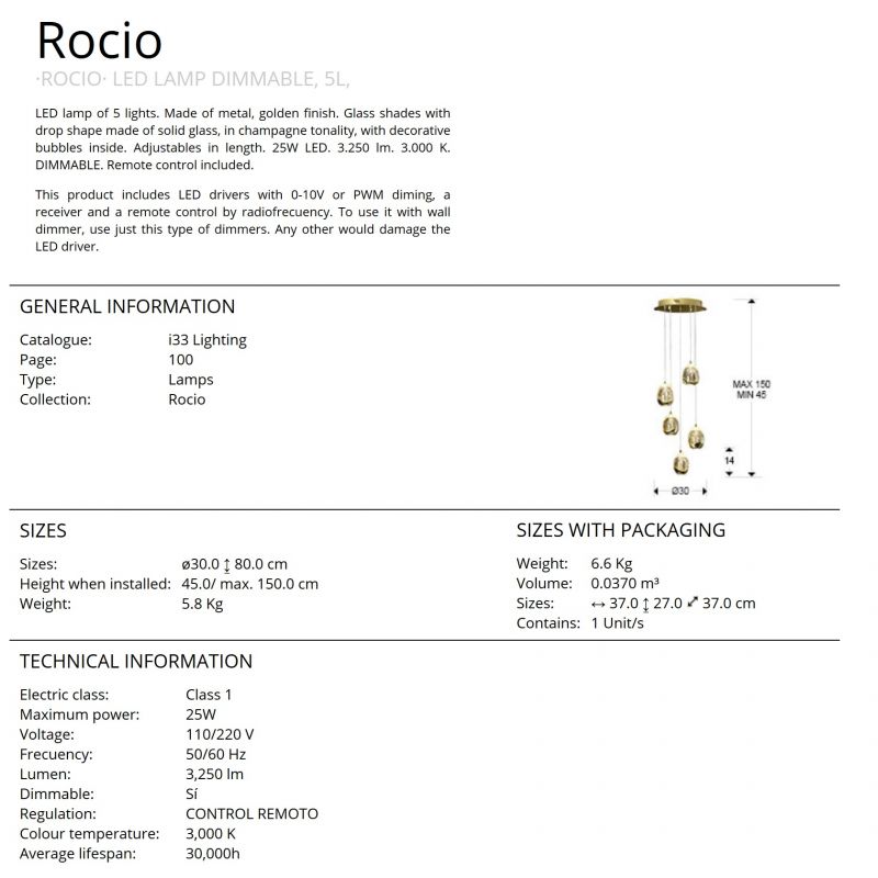 Corpurile de iluminat cu LED din colectia ROCIO sunt elemente pentru iluminat care leaga mobilierul si decoratiunile interioare impreuna si confera caracter incaperii in care aceastea sunt montate. Confectionate dinmetal finisaj cromat sau auriu, sticla solida in forma de picatura cu bule decorative in interior, aceste corpuri de iluminat asigura lumina de accent, fiind o solutie optima pentru iluminatul interior decorativ.