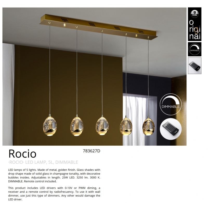 Corpurile de iluminat cu LED din colectia ROCIO sunt elemente pentru iluminat care leaga mobilierul si decoratiunile interioare impreuna si confera caracter incaperii in care aceastea sunt montate. Confectionate dinmetal finisaj cromat sau auriu, sticla solida in forma de picatura cu bule decorative in interior, aceste corpuri de iluminat asigura lumina de accent, fiind o solutie optima pentru iluminatul interior decorativ.