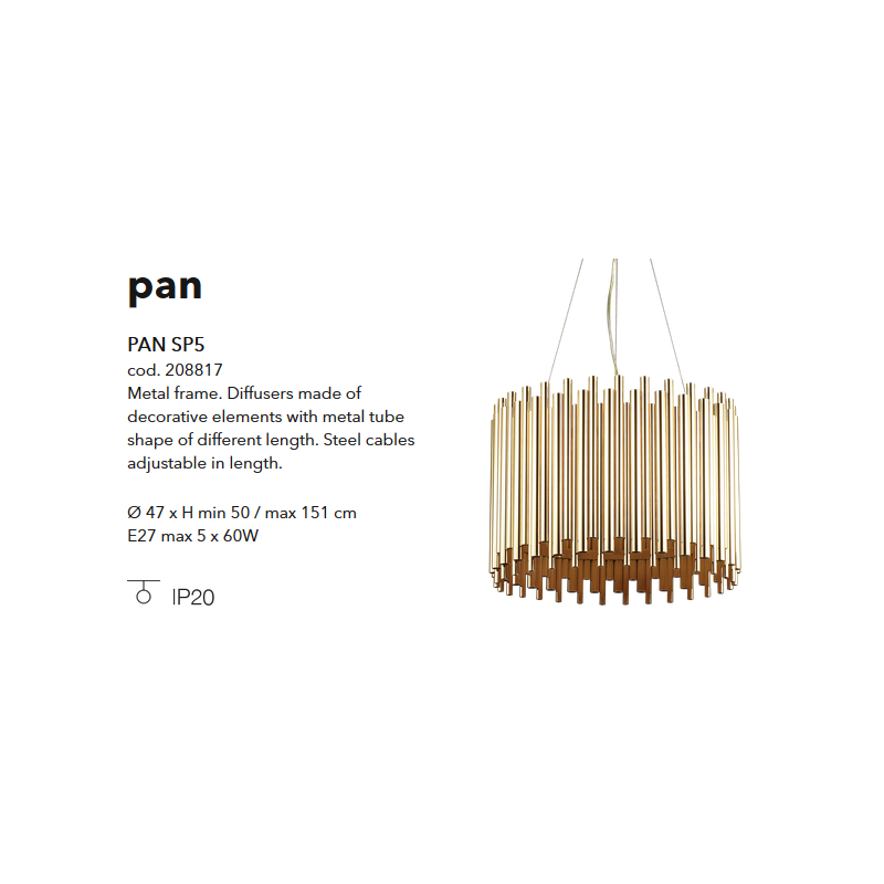 | Descriere | metal, difuzor din elemente metalice in forma de tuburi de diferite marimi, cablu ajustabil |