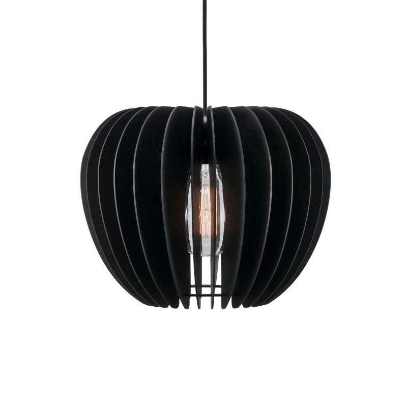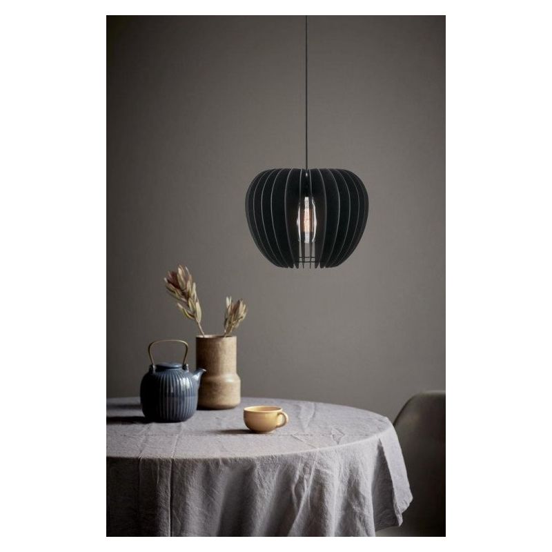 Descriere | abajur lemn finisaj negru, cablu suspensie negru |