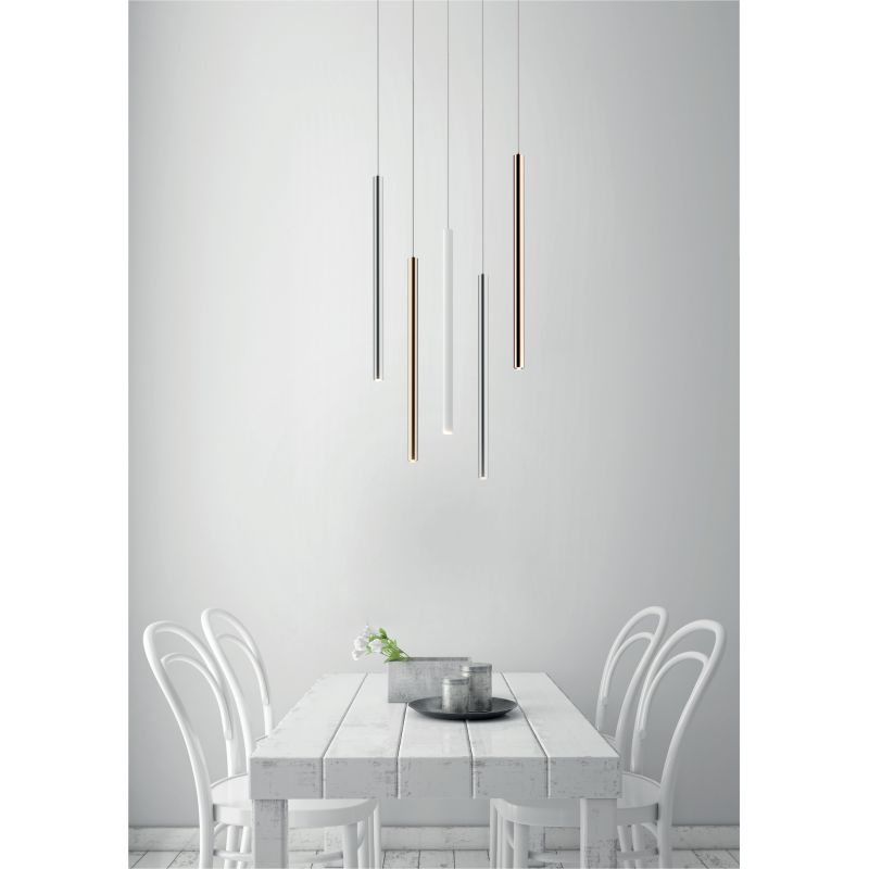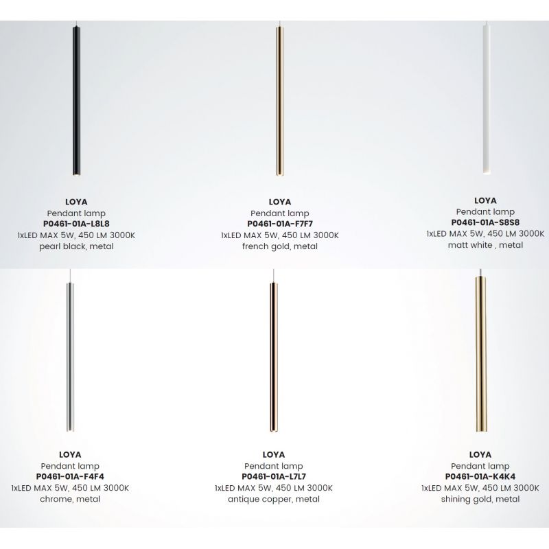 Lustra suspendată LOYA atrage atenția cu un aspect simplu și modern. Pendulul atârnat vertical creează un model original, futurist, care completează designul interior într-un mod interesant. Pendul disponibil în 6 finisaje care adaugă lejeritate și eleganță structurii.
