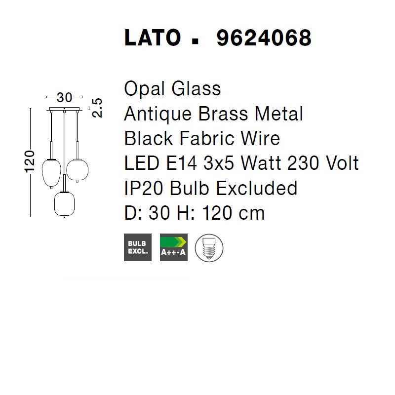 | Materiale | metal finisaj alama antic, sticla alba opaca, cablu textil negru |