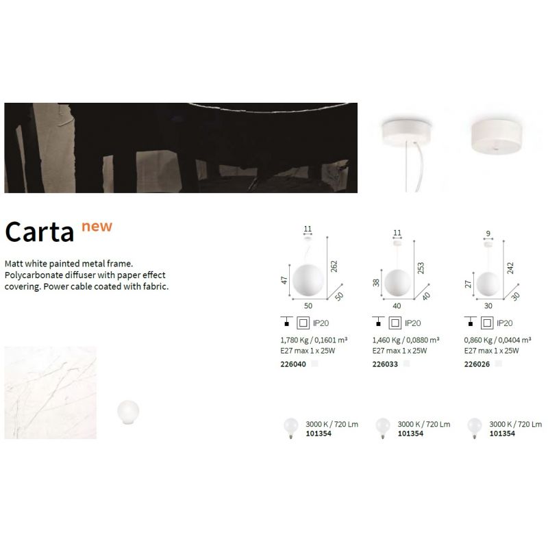 Pendul, Lustra CARTA simplă și frumoasă, lumină suspendata din policarbonat cu efect de hartie, o iluminare elegantă, fiind o solutie optima pentru iluminatul interior în orice spatiu din casa este amplasat (living, dormitor, bucatarie).