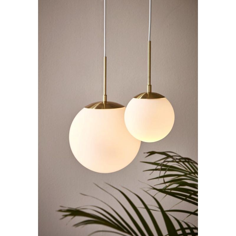 Pendulul Grant contribuie la tendințe de design din zilele noastre, folosind alamă și sticlă opală albă. Un detaliu elegant este abajurul din alamă, care creează un întreg complet între partea superioară a pandantivului și baldachinul. Grantul este frumos atât individual, cât și combinat cu celelalte dimensiuni de pendule din serie.