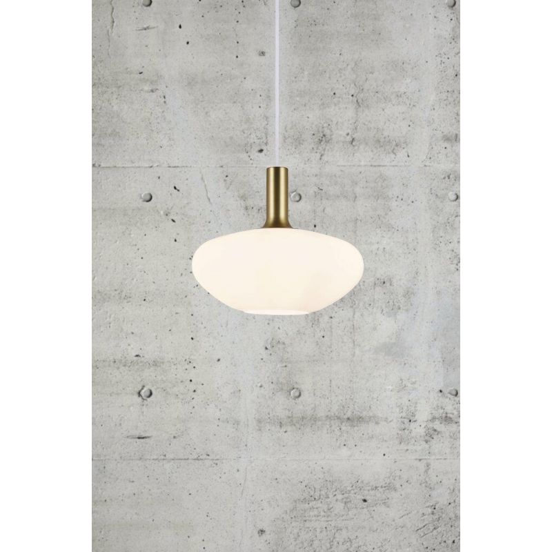 Descriere | sticla alba opaca, baza prindere tavan-metal alb, partea metalica a abajurului disponibila in doua culori- negru si alama |