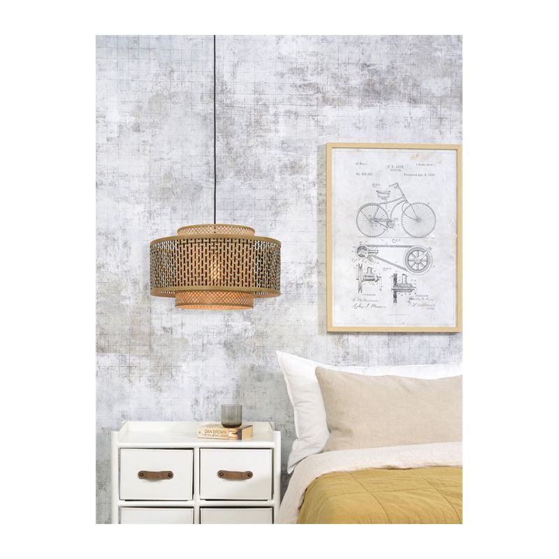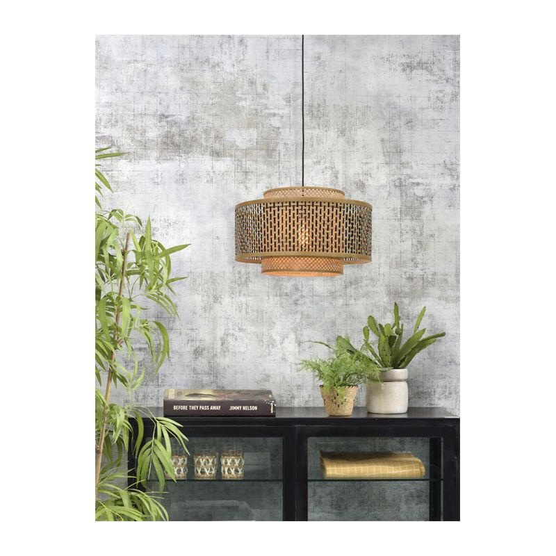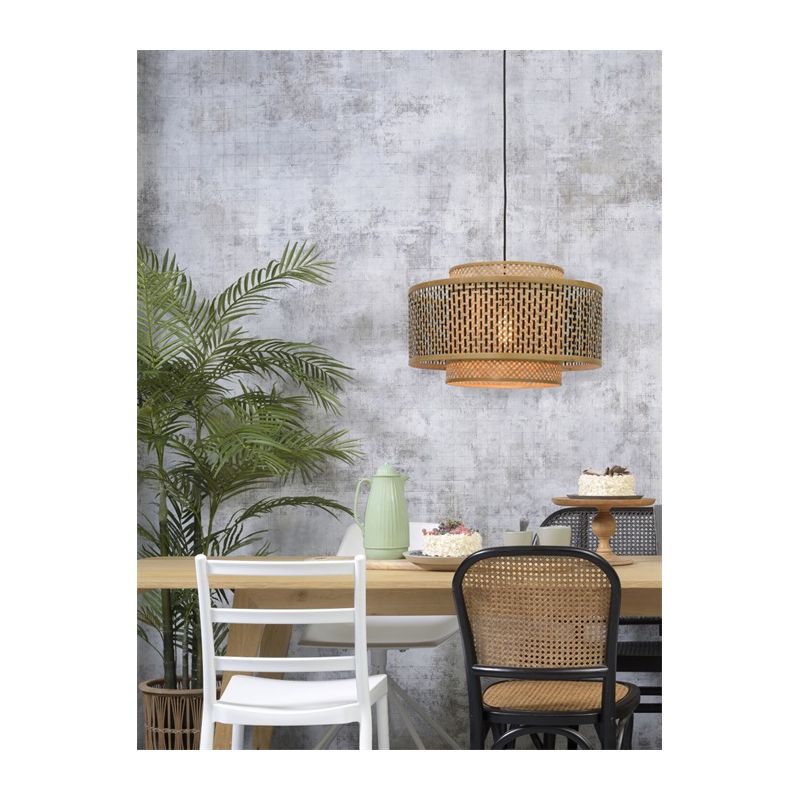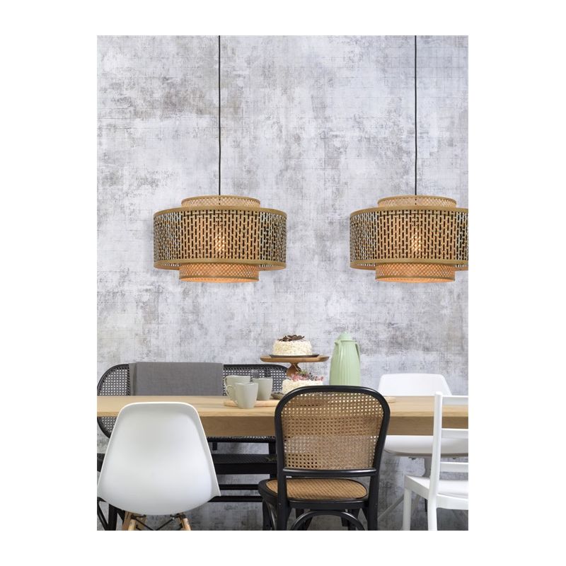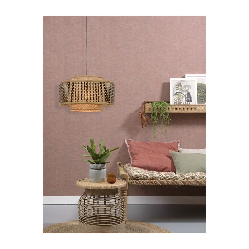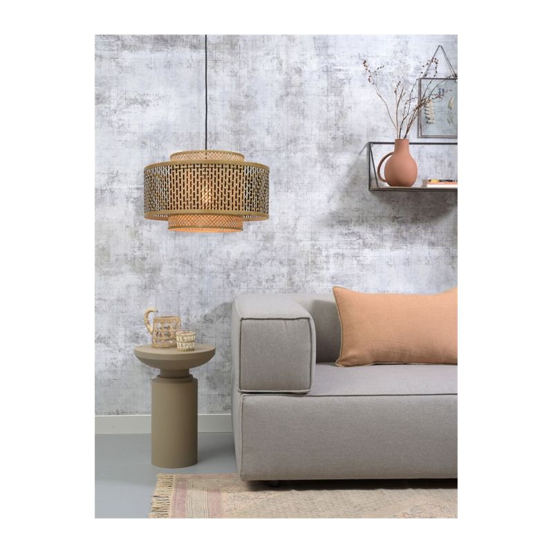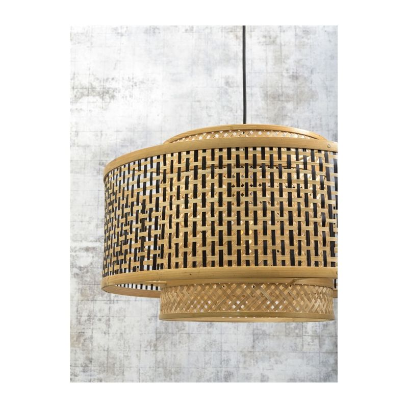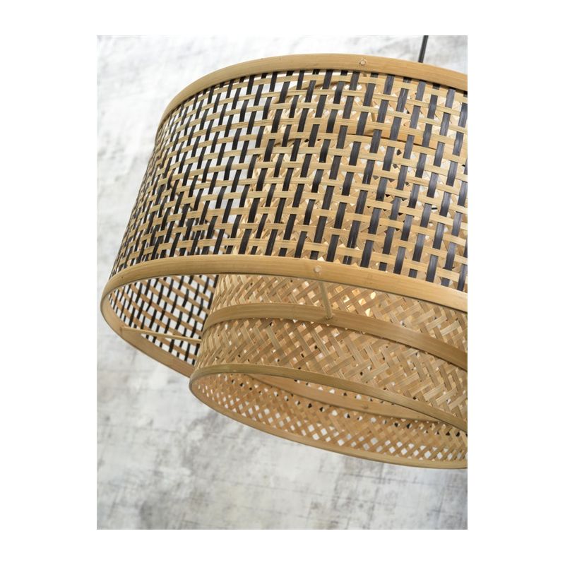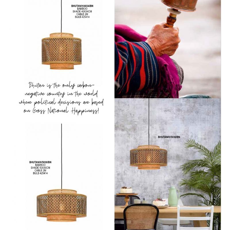 Gama BHUTAN este realizată din benzi de bambus țesute manual, care sunt complet ecologice, contribuind la reducerea impactului asupra mediului și a nivelurilor de poluare. Inspirată de arhitectura himalayană din Bhutan, lustrele adaugă textură și caracter casei tale. Brațul rezistent din bambus are un abajur geometric care cuprinde două abajururi cilindrice care îi îmbunătățesc designul. Nuanța interioară este de culoare naturală și țesută în diagonală, în timp ce nuanța exterioară prezintă o grilă de culoare neagră și naturală.