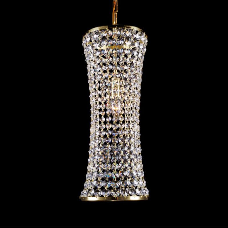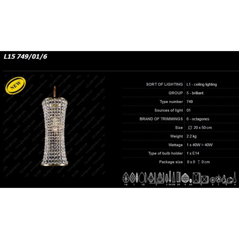 Lustra, Pendul cristal Bohemia, diametru 20cm. Componentele din cristal și piesele metalice fine în finisaj auriu sau argintiu fac o combinație extraordinară. Lustra din cristal, combinată în special cu alte lustre de cristal sau corpuri de iluminat, este potrivit pentru orice interior, modern sau tradițional.