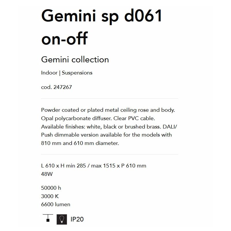 | Descriere | metal finisaj negru, difuzor policarbonat opal, cablu suspensie PVC clar |