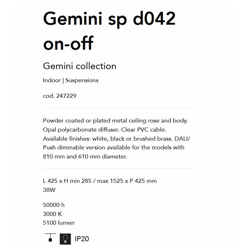| Descriere | metal finisaj alb, difuzor policarbonat opal, cablu suspensie PVC clar |