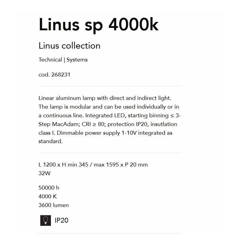 Informatii produs: | lampa liniara este modulară și poate fi utilizată individual sau în linie continuă cu conectaore optionale (excluse din pret) |