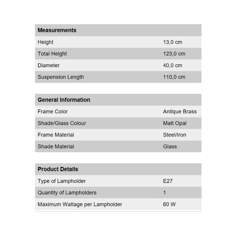 | Culoare | alama antique, opal mat |