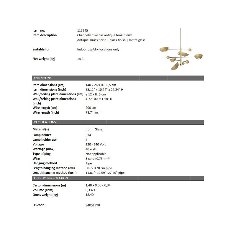 Lustra suspendata design LUX Salinas este realizata din fier finisaj alama antica si sticla mata, lustra Salinas se monteaza pe tavan si adauga o atingere vintage decorului tau.
