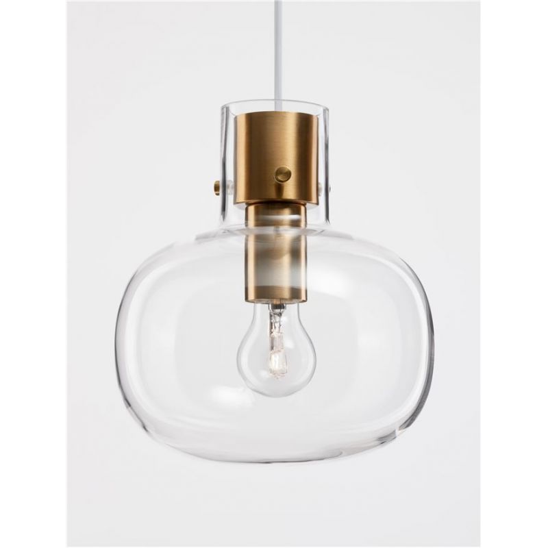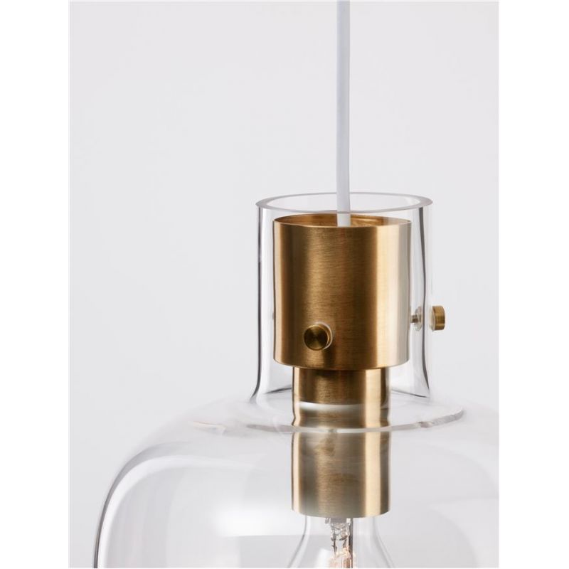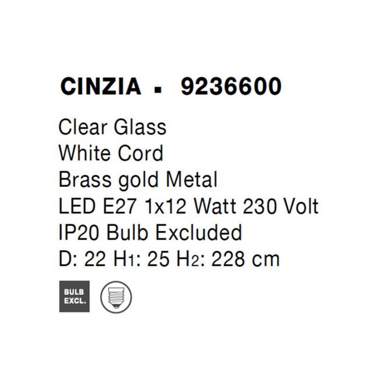 | Materiale | sticla transparenta, cablu alb, metal alama aurie |