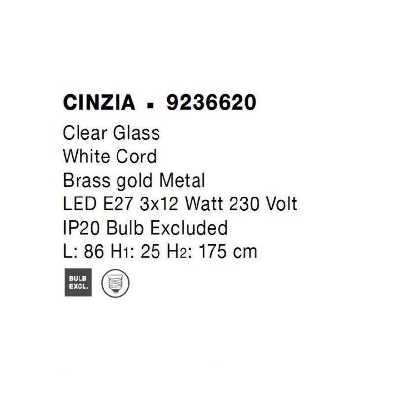 | Materiale | sticla transparenta, cablu alb, metal alama aurie |