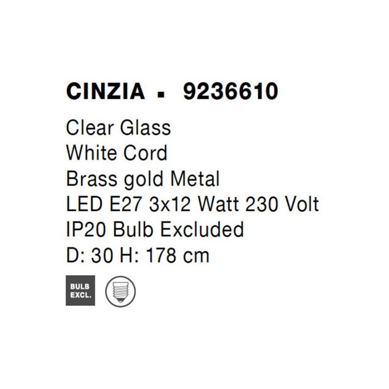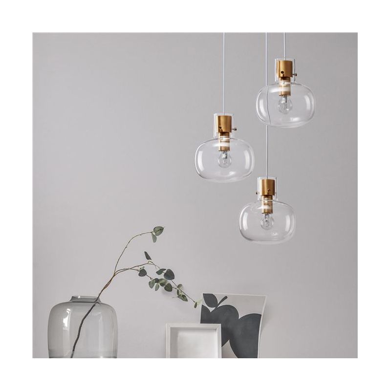 | Materiale | sticla transparenta, cablu alb, metal alama aurie |