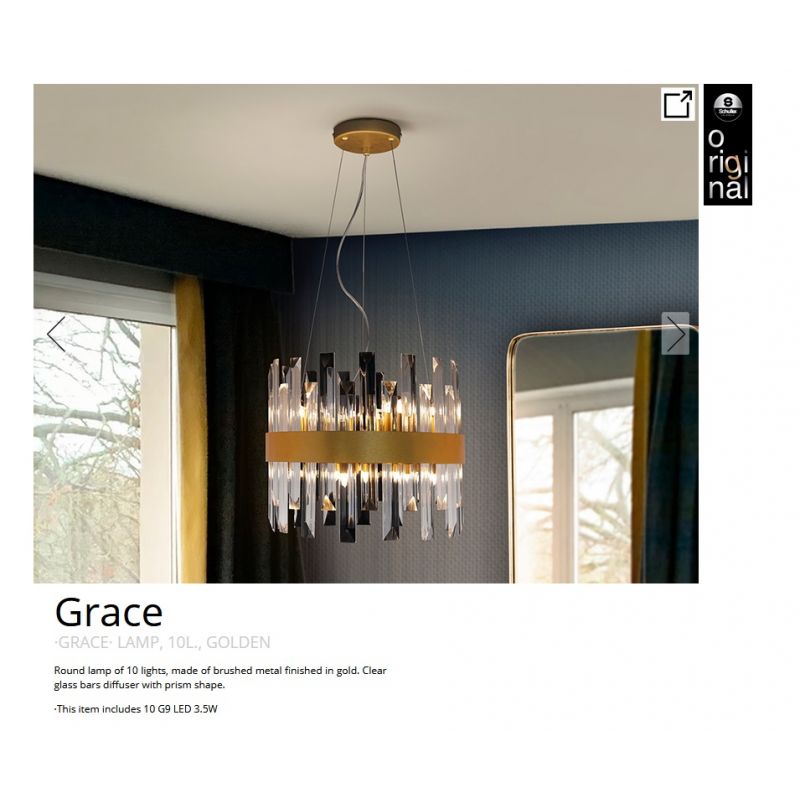 | Descriere | metal finisaj auriu periat, bare de sticla transparenta in forma de prisma |